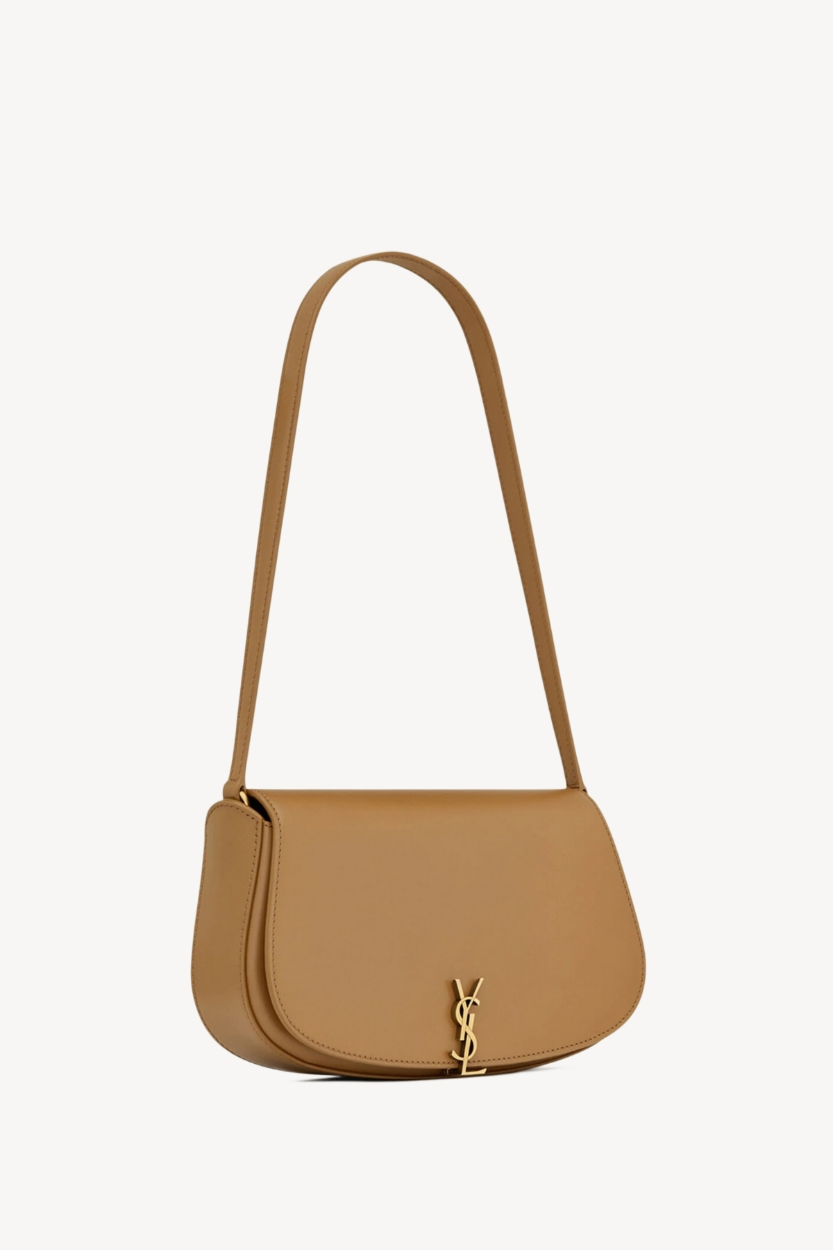 half-moon shoulder bag in calfskin with a gently polished finish.